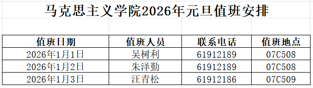 根据学校值班工作安排,为进一步规范学院值班工作,现将我院2026年元旦值班期间有关事项通知如下: